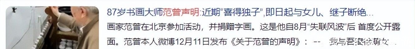 2. 新民晚报:87岁书画大师范曾声明:近期“喜得独子”,即日起与女儿、继子断绝关系